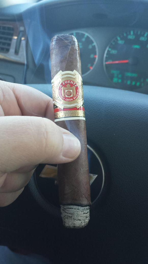 With a inch and a half left the flavors start to get warm and cigar is pretty mushy. The cedar has dropped the sweetness and now has a burned characteristic to it. The leather is still there on the finish but is warm and slightly bitter. I sat the cigar down in the ash tray for the last time at the 1 hour an 2 minute mark. Overall, this cigar gets my recommendation. Its not a everyday cigar or a cigar I would pull out to celebrate with but it is definitely worth smoking.